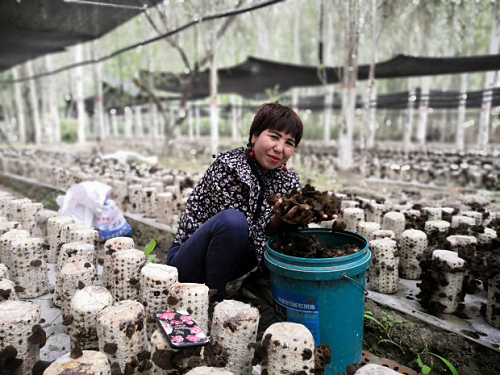 基地里,种植户们忙碌着采摘黑木耳,脸上洋溢着喜悦的笑容。在这里采摘木耳的大多数是村里的贫困户。