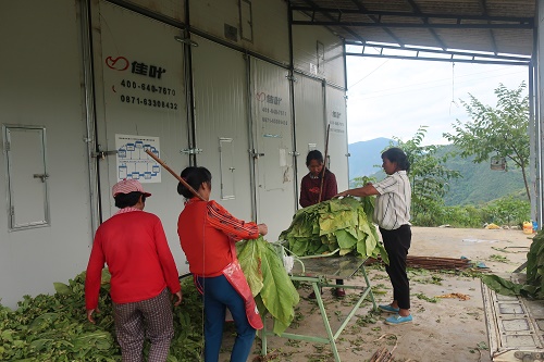 8月8日,大寺乡路山村烤房点第一炉烤烟采摘入炉,路山村烤烟正式进入采摘烘烤期。