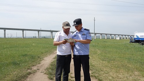 期间,民警对区间涵洞、护网、通道门锁闭情况等进行了细致排查,及时发现护网破损等治安隐患并督促整改,并对前期发现的隐患问题整改情况进行回访复查,确保隐患整改到位。同时民警在巡线过程中对沿线农牧民开展爱路护路宣传教育,向农牧民强调翻越护网、横跨铁路、在护网内放牧的危害以及应承担的法律后果,进一步提高群众的爱路护路和法律意识。此次排查,共巡查线路20公里,发现并修复隐患3处。