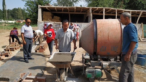 “现在院里地面平整,房屋整洁,牛羊规范养殖,这都与工作队精心指导帮助离不开,今天工作队又组织党员干部来帮我家后院砌墙,以后再也不怕牛羊丢失了。”丘纳克村1组斯皮艳木·买买提看着已砌好的地基高兴的说。