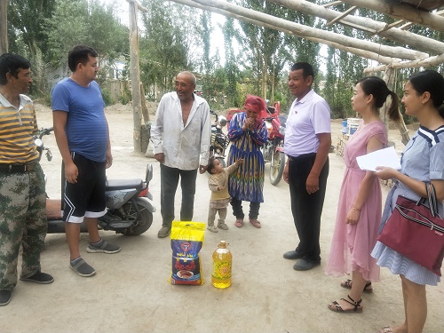 清风网讯(沙雅县市场监督管理局驻村工作队:沈伟伟)8月10日上午,沙雅县市场监督管理局驻琼古勒巴格村工作队与村“两委”一起把党的关怀和温暖送到26户困难群众手中,给他们送去价值2600余元的大米、食用油等慰问品,并为他们送去节日的祝福。