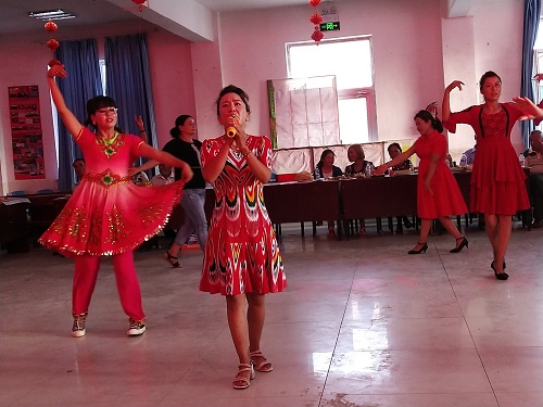 随后优美的集体舞蹈表演《踏踏舞》拉开活动序幕,干部与亲戚们一边欣赏着节目,一边品尝着丰富的水果、馓子、点心、玉米,农家特色的手抓饭,相互诉说着民族、邻里之间的故事,生活中的变化,现场各类节目精彩的表演,赢得观众阵阵掌声。最后,欢快的麦西来甫音乐响起,大家在一起手拉手,载歌载舞,将联谊活动推向高潮。