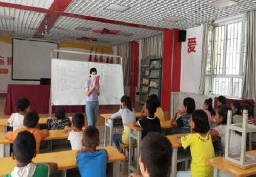 红领巾小课堂除了我,还有两名助教老师,他们也都是返乡大学生,作为“领导”我每天都去上课。记得我教给孩子们的第一次词汇是“祖国”,我觉得作为一个中国人,首先要知道的是热爱自己的国家,这是最基本,其次是教他们讲文明、讲礼貌、讲卫生,当然教孩子们准确拼读国家通用语言文字是我每天的必备课程,有时候也给他们讲讲古诗词分享自己在学校的一些奇闻趣事,教大家做游戏,带着他们一起捡垃圾,保护我们美好的家园。
