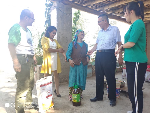 在这风和日丽的八月,古尔邦节如期而至,派出单位主要领导张富全主任及下沉干部与工作队一起组成慰问小组来到本村生活困难群众家中,送去过节所需的面和油,带去节日的问候与祝福。