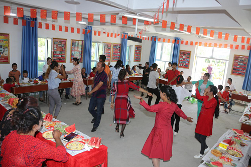 村民和“访惠聚”工作队共同参加庆古尔邦节“民族团结一家亲”活动。村民们穿上节日的盛装,姑娘们打扮得漂漂亮亮,大家相互送上节日的问候和祝福。村干部们忙着端抓饭、摆水果。大家一边品尝美食,一边欣赏居民们自编自演的节目,悠然享受着如今的幸福生活。
