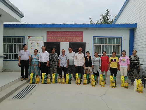 清风网讯(新疆沙雅县人力资源和社会保障局驻村工作队:韩彦军)民族团结一家亲,帮扶解困心连心,节日慰问送温暖,关怀备至暖人心。8月10日,在一年一度的古尔邦节来临之际,为做好节日慰问工作,使贫困户、老党员,独生子女户过上一个欢乐、祥和的节日,共建社会主义和谐大家庭。沙雅县人力资源和社会保障局党委书记游鸿、仲裁办主任依不拉音·苏莱曼、村第一书记罗志超、村党支部书记吾斯曼·马木提、机关干部、工作队员共25个人。对老党员、贫困户、失独户共计35户群众进行了节日慰问,为他们送上了价值0.3万元的大米、清油等节日慰问品,同时也送上了浓浓的节日祝福。