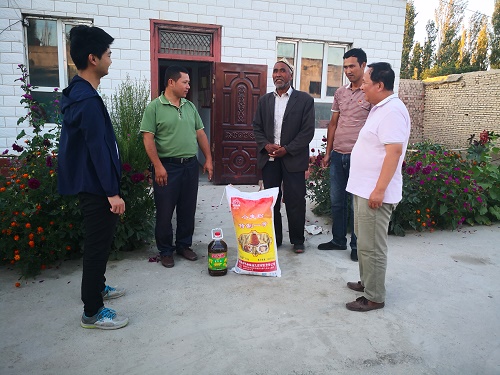 走访慰问期间,亚吐尔村第一书记、工作队队长滕卫清、村党支部书记艾力·克热木代表工作队和村两委为困难群众送去了面粉和清油,为他们送去了党的关怀和节日的祝福,并与群众进行了亲切交谈,详细了解他们近期的生活生产状况、思想动态、现实困难,积极宣传了党的富民政策、惠民利民措施,激发脱贫致富积极性,引导贫困群众逐步转变“等、靠、要”思想。同时鼓励贫困群众要坚定脱贫决心,树立致富信心,依靠自己的双手脱贫致富。