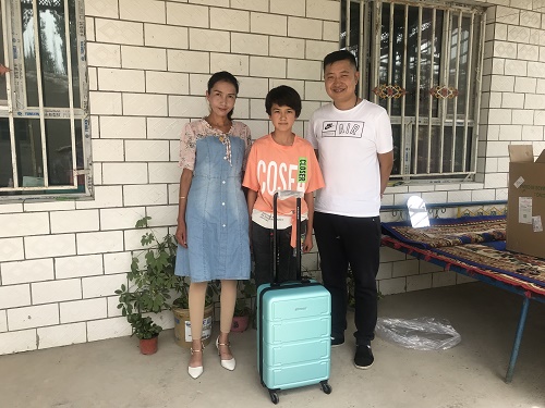 穆凯热姆·赛麦提今年14岁,家中条件困难,经济来源很少,为了让孩子能顺利的去上学,家里也是东拼西凑,苏建行的资助就像一场及时雨一样缓解了她家的困难。送课桌、送文具、送书包、以及经济资助帮助她顺利完成学业,作业辅导、模拟测试、学习计划、还有品德教育帮助她做的品学兼优,穆凯热姆今年以208分的好成绩被内初班录取,苏建行送去祝贺,并送上亲自挑选的行李箱。苏建行已实际行动践行民族团结一家亲。