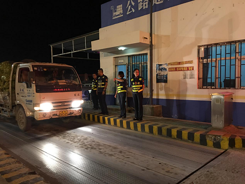 结束了一天紧张而忙碌的工作后,下沉机关干部在晚8时准时到达玉尔滚治超站,迅速投入夜查行动中。整治过程中,全体治超人员始终保持良好的精神状态,规范执勤执法,严格检查货物运输车辆。历时四小时的夜查行动,累计检查一百余辆货物运输车。