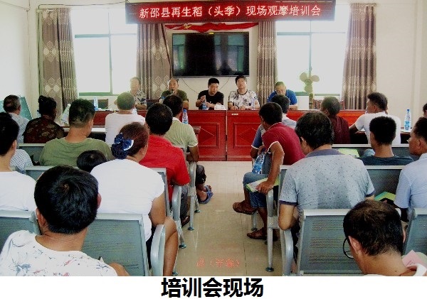 培训会现场,新邵县农业农村局专家详细讲解了“甬优4949”再生稻品种高产高效栽培技术要点和注意事项等,并就该品种的播种移栽、田间管理、病虫草害防治与生长进度进行了对比。