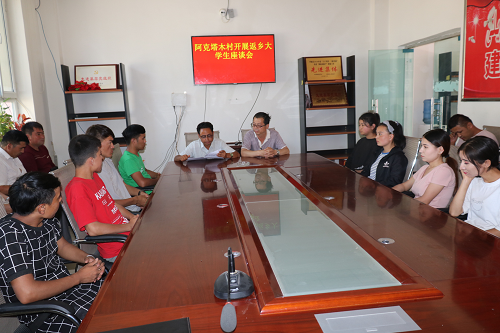 座谈会上第一书记、党支部书记详细介召阿克塔木村基本情况、各项惠民政策的实施情况、村委会各项工作开展情况。返乡大学生欣喜地谈到在党和政府各项惠民政策的引领下家乡发生的巨大变化。