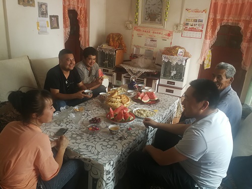 清风网讯(新疆地矿局第八地质大队驻村工作队:徐其伟 孙振标)“孙队长,曼 育得 塔吾孜(西瓜)昂,亚克西...?”毛尼亚孜·麦米提明竖着大拇指急切的说。“西瓜?你们家地里种的不是色素辣椒吗?哪里来的西瓜...?”一起走访的工作队员艾尼瓦尔·沙来翻译道:2018年10月份,由政府牵头,驻村工作队督促实施发展乡村振兴战略,各家庭住户开始清理房前屋后的角落,经过冬季的整理,毛尼亚孜·麦米提明家把原来堆放杂物、垃圾的地方,清理出来的闲置土地约0.7亩。春天,闲置的土地栽上了果树,新种的小树苗,因为不能快速产生经济价值,在不影响树苗生长的空间内又套种了西瓜苗,有的家庭清理出来的土地里种的是甜瓜,有的种蔬菜···因为管理得当,毛尼亚孜·麦米提明家种植的西瓜产量丰收、成熟了,赶在托克逊巴扎(集市)的前一天,摘了满满一辆三轮摩托车的西瓜,当天就在巴扎上售卖光了,挣了430块钱。现在还有一茬子西瓜,估计还能挣5-600元...