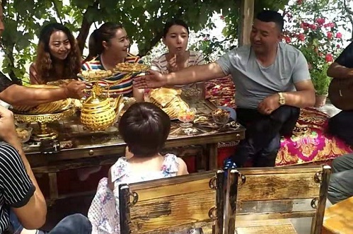 清风网讯(拜城县克孜尔歌舞团驻村工作队:如孜宛古丽·艾力)拜城县克孜尔歌舞团驻大宛其管委会科台克吐尔村村工作队为深入贯彻落实自治区的决策部署,将自治区各项惠民政策宣传到基层、贯彻落实的家家户户,将社会稳定深深刻印在每一个村民的心中。2019年8月18日,派驻单位干部阿迪力·居麦和工作队员们一起通过走访慰问、入户谈心等方式加强与亲戚的感情交流。阿迪力·居麦带着今年刚参加完高考的女儿,拎着礼物,怀着迫切的心情前往亲戚家中。到亲戚家后瞬间被亲戚的热情所融化,亲戚们把早已准备好的饭食摆上了餐桌,浓浓的亲情自然而然的开始了。