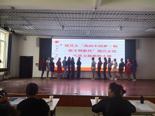 为隆重庆祝中华人民共和国成立70,康其乡于8月20日在阿热勒村举行“我的中国梦·畅想文明新风”现代女性气质主题模特大赛。来自康其乡12个村的12支模特队伍参加了本次大赛。