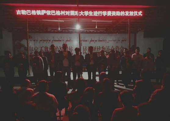 清风网讯(沙雅县农业局:周鸿 顺军)8月20日晚,为切实解决圆梦大学生的家庭实际困难、鼓励他们努力学习将来为祖国和社会做贡献,由萨依巴格村工作队、村委会发起的困难大学生学费资助发放仪式在萨依巴格村文化广场隆重举行。会议由萨依巴格工作队队长、第一书记塔依尔·乃买提主持,古勒巴格镇人大主席团主席依米提·依布拉依木道贺并全程参加了会议;全体工作队队员、村干部、返乡大学生及各界群众共计721人参加了会议。