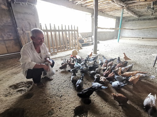 阿克苏地区农业农村局驻村工作队在入户走访中了解到,维吾尔族有养殖鸽子的传统,很多村民都在庭院内养殖了鸽子,除了自己食用,主要用来了观赏和把玩,并没有形成养殖规模,没有想着通过发展庭院鸽养殖增收致富。