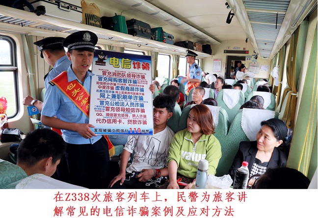 活动中,包头铁路公安处反诈骗宣传小分队的民警们变身“讲师”,结合近年来破获的数起电信诈骗案件,采取以图释法的新颖形式,向旅客群众普及了电信诈骗“六个一律”、“八个凡是”、“48种常见诈骗方式”等知识,讲解之后,还通过有奖问答的方式,充分调动旅客们的积极性,进一步加深对各个“知识点”的印象。宣讲活动期间,包头铁路公安处组建反诈骗宣传小分队2支,深入各大车站、车次开展宣传17次,制作展板5块,发放宣传品7200余份,参与旅客11400余名。