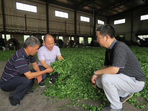 湖北楚山春茶业股份有限公司是集茶业种植,生产加工,科技示范,生态旅游,集产、供、销为一体的民营企业。以种植无公害茶业为主,服务茶农为宗旨,振兴茶经济,弘扬茶文化,公司拥有名茶车间、大宗绿茶车间、名优茶购销门市,为民茶业专业合作社。现有绿色无公害有机茶园8000亩,茶农3600户,专业技术员48人,专业技工280人,年产值5000万元。所产楚山春牌英山云雾茶采制工艺精湛,品质独特,色泽翠绿,香气鲜爽悠长,滋味鲜醒回甘,汤色鲜亮,叶底碧绿如鲜等特点畅销全国各地。图为8月21日,公司法人代表段海建向县科协负责人介绍茶叶生产加工情况。