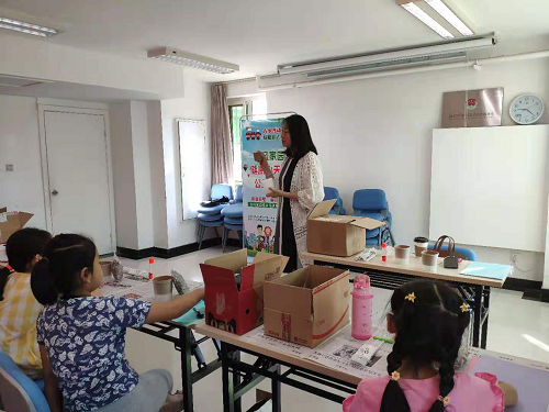 在社区服务中心,社区负责人介绍了社区环境绿色提升项目的情况,向参加活动的青少年介绍了保护社区环境与利用废旧物品的社会价值与作用。春晓项目负责人介绍了此次活动的内容与流程,给参加活动的青少年发放了活动所需材料。