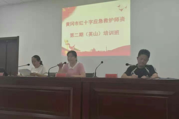8月19日上午,黄冈市应急救急救师资培训第二期英山班开班仪式在市委党校举行。此次开班仪式由黄冈市英山县红十字会张晓华会长主持,到会的领导有黄冈市红十字会漆秋红会长、郭荣琳秘书长。