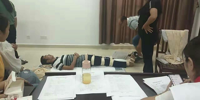 这次为期7天的培训跟以往的暑期教师业务培训有很多的不同:第一、学习的内容丰富、形式多样:有应急救护常见急症理论知识的讲授、小组讨论;有心肺复苏和创伤救护急救技术的细心讲解、示范、个人实操练习;有突发事件理论讲授、讨论;也有心理救护的理论讲授;还有实地的生命健康安全体验与户外拓展训练。第二:培训的时间安排科学、紧凑,我们所有的培训人员一切行动听指挥,白天听课小组讨论,晚上进行内容消化实操练习,人人学习的积极性高涨,个个都精神饱满;第三:这几天给我们授课的几位老师个个都专业知识扎实、负责任、有耐心且很辛苦,特别是陈乐老师跟黄蓉老师,她俩专业的知识和敬业的工作态度让我们印象深刻,若有不会操作的地方陈乐老师会十分耐心手把手的一遍又一遍地教我们;若有不理解的急救知识专业术语黄蓉老师就会用她通俗易懂幽默的语言让我们现场融会贯通。第四:结业的形式不再是像以往走流程式的做做样子,而是严格的按照考试要求,参训的所有人员统一先笔试闭卷答题,然后心肺复苏的操作技术是人人必考必须合格的,创伤出血与止血、现场包扎技术、骨折固定三个内容是以分组抽签的形式准备实操,再就是自选课题自制课件准备一堂试讲课,最后再根据所有考核的内容综合来定我们是否具备当一名合格的应急救护师资的。第五:领导高度重视,市红十字会郭秘书长和我们英山的张会长在这7天的培训学习中,一直是与我们学员同吃同住一同上课,非常的辛苦!