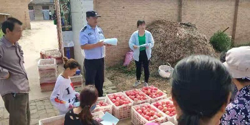 清风网讯(延安铁路公安处黄陵站派出所:孟亮、郭庆)渭北黄陵、洛川、宜君、白水黄土塬区是全国有名的优质苹果主产区,每年8月份苹果开始成熟后,附近市县的季节性农民工务工流也随之而来,延安铁路公安处辖下的包西、甘钟两条铁路线恰恰由南向北贯穿四县苹果产区,有的区段甚至穿果园而过,不但铁路客流增加了,行人上道、机动车过铁路道口的频次也增加了,给铁路行车带来了很大隐患,为此延安铁路公安处黄陵站派出所及时组织民警走村入户对广大果农进行了全覆盖式法律法规宣传。