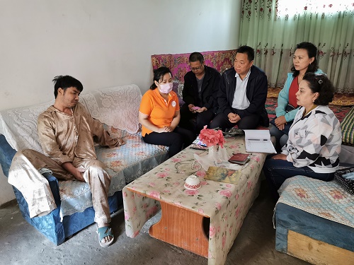 自治区民政厅驻库木布拉克村工作队知悉后立即来到艾孜孜·艾麦提家中详细了解其患病及手术康复情况并着手救助帮扶帮扶工作。工作队通过引入专业的社会工作者对其提供心理咨询疏导服务,帮助他消除阴影,重建生活信心;将其纳入社会工作服务项目救助对象,提供1万元救助金帮助其解决后续治疗费用和康复困难;同时送去一辆轮椅,方便他临时生活;待其彻底康复后再为他联系安装假肢,让他重新站起来,开始全新的生活。对于工作队雪中送炭给予援手,艾孜孜·艾麦提一家人泪水连连,不停地说:“感谢党!感谢政府!”