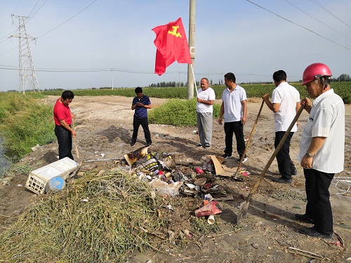 2019年8月27日,丰收片区西萨依拉特村党支部书记陈可强带队统一组织,参加人员有工作队成员、党员、村干部及村民代表一起对村路口前方700米处道路两边卫生杂物进行了打扫和集中清理。