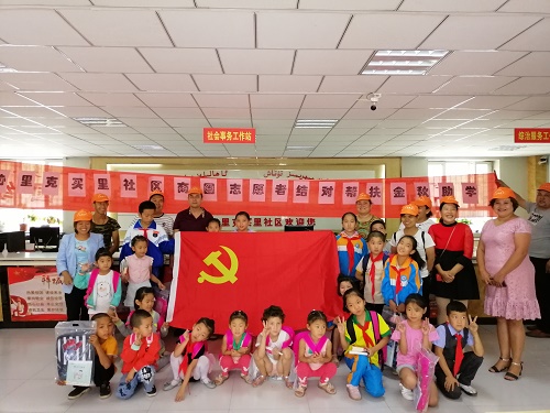清风网讯(拜城镇访惠聚办公室 :吴新梅)微风瑟瑟的初秋时节,孩子们又迎来了新学期,少年儿童是祖国的未来,民族的希望。关心少年儿童健康成长是党和国家的大事。为保证辖区困难家庭的孩子也能顺利开学,八月二十八日,拜城镇协里克买里社区党支部牵线搭桥,组织辖区部分热心商铺志愿者开展了结对帮扶、金秋助学活动。