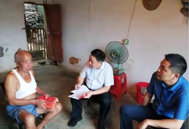 胡秉阳(左)走访给对帮扶的贫困户晏四雄。