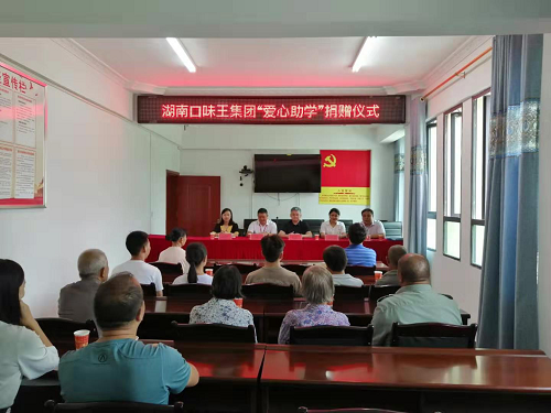 此次“爱心助学”捐赠活动得到湖南省市场监督管理局、湖南口味王集团和迎光乡党委政府的大力支持,旨在帮助家庭困难的优秀学子摆脱贫困、接续青春梦想、顺利完成大学学业,湖南省市场监督管理局副局长陈跃文、湖南口味王集团董事会秘书罗丽华、邵阳口味王公司总经理陈敏、湖南省市场监督管理局驻大坻村扶贫工作队队长王林志和迎光乡党委书记吕瑶琦出席捐赠仪式。