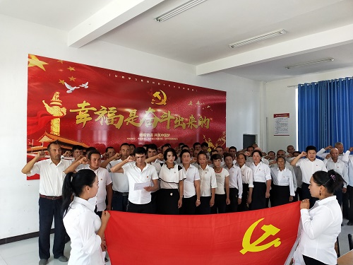 会议在庄严的国歌声中拉开序幕,通过歌唱祖国传递着热爱祖国、热爱家乡、热爱生活的正能量。奏唱国歌后,全体面向党旗,高举右手,重温了入党誓词,深情回忆申请入党的初心、加入党组织时的光荣 。