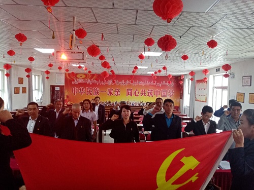 主题党日活动按照《拜城县农村基层组织建设“五个基本”实施方案》规范支部标准化建设。全面实行主题党日“四统一”工作机制(统一活动时间、统一参加人员、统一活动内容、统一活动程序),活动按照1、全体整队齐唱《国歌》;2、面对党旗重温入党誓词;3、党员重念“入党志愿书”(入党申请书);4、党员交纳党费;5、开展学习习近平总书记关于“不忘初心、牢记使命”有关论述。6、组织党员谈体会;7、开展主题党日活动(红心闪耀在天山,深化初心使命)为主题学习《阿克苏日报》关于拜城县创建“初心红”党建品牌系列报道之一、之二,教育引导党员关注拜城县党员工作特色、关心党建工作开展、主动落实好党的建设各项工作。8、活动结束后由第一书记对今天的活动进行点评。