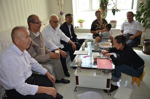 王永淑看到大家来看望她非常高兴,大家在一起畅谈近期退休党员党支部成立以来所开展的活动,在成立过程中存在的问题,有哪些改进,王永淑老同志一边拿着本子一边和大家讨论着,大家都有一个目标,就是为退休党员干部和党支部绘制好一张蓝图,怎样发挥好退休党员干部作用,为辖区群众化解矛盾纠纷、为维护社区环境卫生等发挥党员干部退休不退休的作用。
