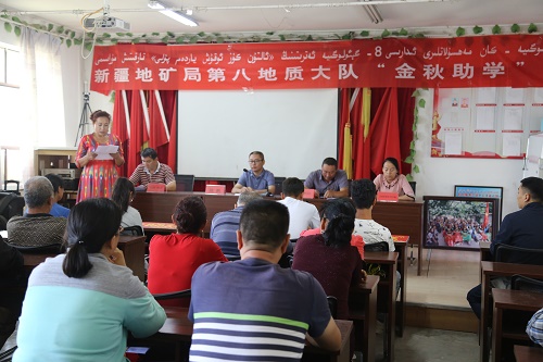 活动上,工作队派出单位领导陈鹏勉励获得助学金的莘莘学子到:“教育是民族振兴、社会进步的重要基石,是功在当代、利在千秋的德政工程。希望在座的每位学生都能树立远大抱负,坚定理想信念,做一个自强不息的人,一个懂得感恩的人。要把党和政府的深切关怀、新疆地矿局第八地质大队真心关爱转化为感恩社会立志成才的强大动力。同时向以优异成绩考入大学的同学们表示热烈的祝贺!向节衣缩食供子女求学上进的各位家长表示崇高的敬意! ”