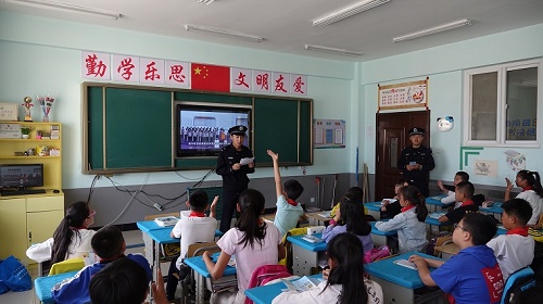 清风网讯(白音华南所:姚永成)为深入开展“平安站车路、金盾伴你行”专项行动,切实提高中小学生铁路安全和爱路护路意识,9月4日,白音华南所深入白音华镇能源化工园区小学开展《开学第一课》爱路护路安全主题宣传活动。