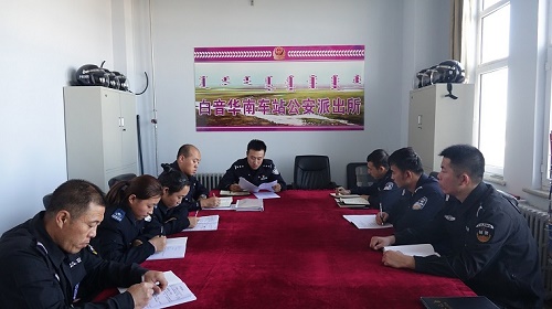 期间,所领导对《关于对锡林浩特公安处化德车站派出所原所长耿春集违纪案件的情况通报》文件内容进行在学习,要求全体民警认真学习、反思。随后结合当前开展的“守初心、担使命、严纪律、树形象”纪律作风专项整顿活动,向全体民警、警务协勤人员强调:一是严格各项警纪条规,遵守“八项规定”、“三项纪律”、“五条禁令”;二是规范执法执勤活动,按要求佩戴各种装备;三是认真落实勤务制度,严格队伍管理,强化安保工作措施,确保不逾越红线。
