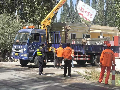 拜城路政海事局联合拜城公路分局开展“迎国检、忙整治,集中清理非标行动”