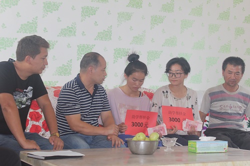 9月4日下午工作队随即前往供2名大学生王生军家为学子送去温暖和6000元助学帮扶金,工作队队长张巨山说到:“到了学校有啥问题及时给我打电话,只要是你们的事我会管的,我会想尽一切办法管的,虽然管不了太多,但肯定能应个急。在学校要好好努力学习,将来要以优异的成绩回报家人,回报家乡。”王海婷拿到助学金后激动的说到:“谢谢叔叔给我发放的助学金,这笔助学金真是解了我们家的燃眉之急,现在家里没有多少收入来源,是一年中最紧张的时候,感谢党、感谢工作队,我一定会用优异的来回报祖国、回报家乡。”