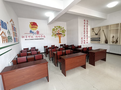 工作队组织召开团组织座谈会,以村级阵地为依托,创建“青年之家”活动室,出资10000余元粉刷墙面、打造5米长的学习书架、乐器展架,全体队员齐动手,清扫、擦拭、张贴宣传画,摆放了1200余册各类书籍、30多件乐器、20多张桌椅。