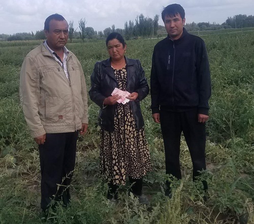 队长塔依尔在听到阿依古丽的哭诉后,首先询问了她在哪里购买的种子,是否有索证索票,还有没有剩余的种子,袋子是什么样子的。阿依古丽一听便着急的说:“我一个女人,哪懂那么多,就去镇里购买了够种这1亩多地的西瓜种,全部种地里面了,袋子种完就扔了……”说着便哭了起来。