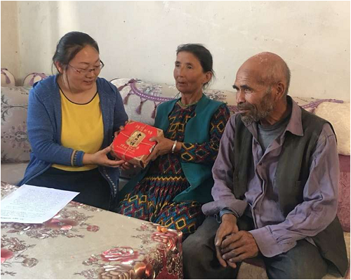 清风网讯(拜城县文旅局下沉米吉克乡希尔尕塔依村干部:阿迪拉·买合木提、阿达来提·艾沙)近日来,拜城县文旅局下沉干部与希尔尕塔依村的群众生活在一起、劳动在一起。9月5日拜城县文旅局下沉干部走到希尔尕塔依村热西提•卡依木、拜合提尼沙木等村民家并送去了中秋的慰问品,给他们诠释中秋节的渊源,激发各族群众爱国、团结、友谊、奋进创业致富的劲头和志气,使让他们认同传统节日,喜爱传统节日,过好我们的节日。