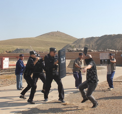 期间,民警组织铁路职工学习了防暴头盔、防刺服、防爆叉、防暴棍等反恐装备的使用规范,对具体操作流程进行了演示。随后,民警组织内部单位职工模拟突发刀斧砍杀事件开展反恐演练。通过开展反恐培训演练,进一步强化了内部单位职工应对突发性暴恐事件的应急处置能力,为维护辖区安全稳定打下坚实基础。