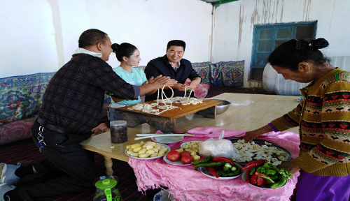 2019年9月11日下午,吃好一顿“融情饭”、吃出民族团结情!拜城县人社局“访惠聚”驻村工作队正在和结亲户家里一起 “迎中秋庆丰收开展民族团结一家亲”活动。中秋佳节到来之际,村民家中的核桃又获得了大丰收,驻村工作队员和结亲户一家人欢聚一堂、畅谈丰收成果、其乐融融过中秋。