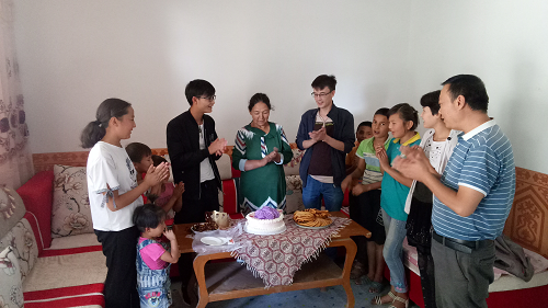 清风网讯(拜城县农业农村局:杨良)“太感谢你们了,我今年65岁了,第一次这么多人在一起过生日,感谢你们,祝大家每天都开心”,吐尼沙汗·吾斯曼满怀深情的说道。今天,工作队队员在走访中了解到13日是吐尼沙汗·吾斯曼65岁的生日,为了让她有个惊喜、过一个有意义的生日,工作队队员提前到店里定制生日蛋糕。下午工作队队员带着生日蛋糕来到吐尼沙汗·吾斯曼家里,叫上周围小朋友,大家一起唱生日歌,共同祝福吐尼沙汗·吾斯曼身体健康,万事如意。吐尼沙汗·吾斯曼激动的说:今天是中秋节,祝所有人家庭幸福、合家欢乐,祝各族人民团团圆圆、生活越过越美好。