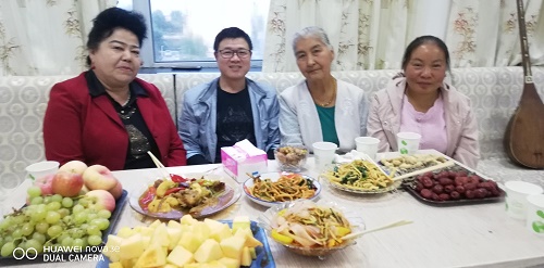 “中秋节是咱们中华民族的传统节日,也是咱们各民族大团圆的日子,希望各族人民像石榴籽一样紧紧抱在一起,把咱们新疆、把咱们社区建设的更加美丽,各族人民更加团结,社会更加和谐,为维护新疆社会大局稳定做出更多更大的贡献,为祖国70周年大庆献礼!”北大桥社区主任艾则孜艾力·马木提这样说到。