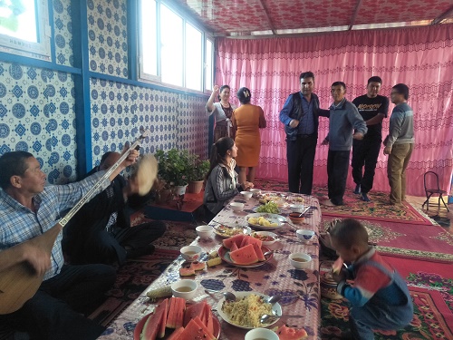 为促进村里各族人民的团结、为丰富“民族团结一家亲”活动的内容,促进各族干部群众相互了解、相互学习、相互帮助。在中秋节来临之际,2019年9月13日,拜城县克孜尔歌舞团驻拜城县米吉克乡团结村“访惠聚”工作队成员与村里各族人民组成的村民在一块儿唱起歌,跳起舞欢度中秋节,通过此次活动增进了彼此之间的感情。
