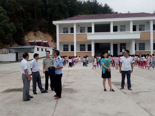 在杨柳湾镇河南畈小学检查时,领导们从门禁人防力量、防护装备、防范设施、防范措施、管理制度、防控时段、防范部位、突发事件应急处理准备等方面全面检查。特别是对学校围墙、教学楼、学生食堂、学生宿舍的安全出口、消防装备、消防通道、应急照明装置等方面重点的检查。