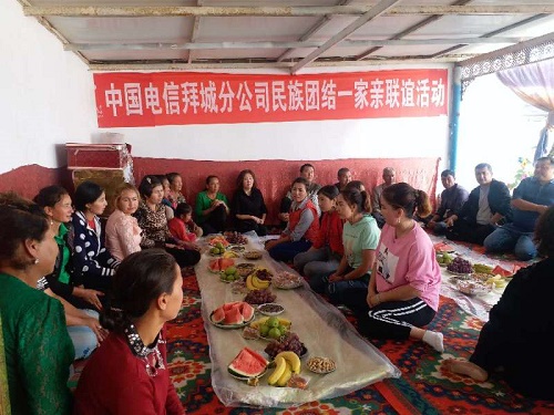 清风网讯(中国电信拜城分公司驻村工作队:阿依先木古丽·吐尔迪)2019年9月16日下午,察尔齐镇依力克其村3组乃麦提·吾斯曼家里传出一阵阵笑声和掌声……拜城县电信公司“访惠聚”工作队,下沉干部和群众举办了“民族团结一家亲联谊活动”。
