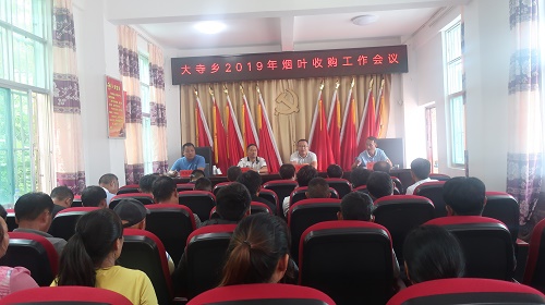 清风网讯(大寺乡:鲁秀娟)9月12日,大寺乡召开2019年烟叶收购工作会。乡党政领导班子成员、乡烟办负责人、8 个种烟村总支书记、村委会主任、漭街烟站站长、烤烟师傅、分级技术员参加会议。